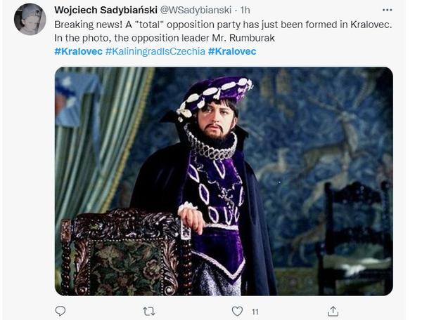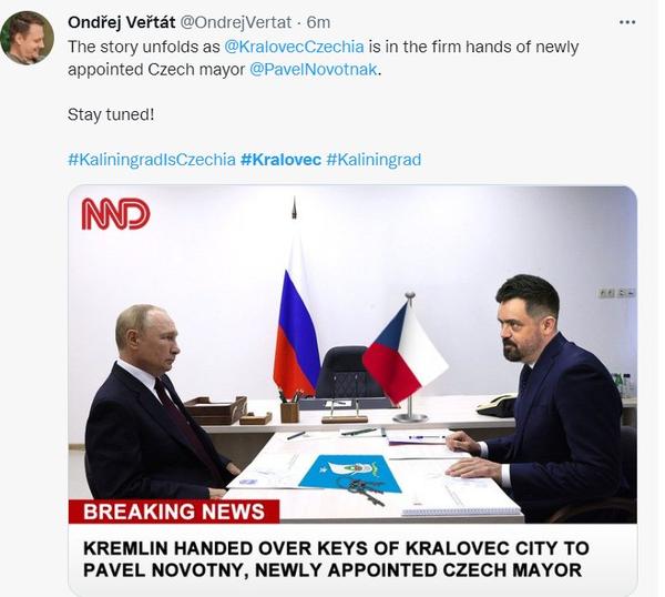Mně by zajímalo, když Putin žije v tom svým bunkru, jestli se k němu dostala tahle informace. A chtěla bych vidět tu jeho reakci, Češi z nás mají srandu a píšou o tom, že Kalinigrad je jejich a spoustu lidí je podporuje :D