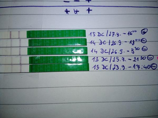 Jinak ještě nevím, kdy tedy bude OVU, ale test dnes 15DC což už i proti minulému je super pokrok. Min.cyklus jsem pozitivní měla až 21DC, proto jsem chtěla začít testovat kolem toho 20DC, ale bílkovej hlen mi dal nápovědu ať začnu dřív :D