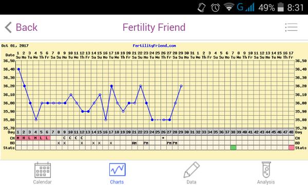 Ahoj holky, po delší době se hlásím. A jdu na radu. Už si vážně nerozumím. Poslední ms byla úplně jiná, slabší, ačkoliv břicho těsně před jejím příchodem strašně bolelo no a navíc mi teplota klesala až druhý nebo třetí den. No a to co je v grafu teď taky nechápu. Téměř celý cyklus mám i čirý až bílý výtok. Před pár dny nahnědlý (spíš bych řekla že se jednalo ó sliznici) a hned den na to čirý s nitkou čerstvé krve (malilinko jasně červená) a teď zas nic. Vzhledem k poklesu teploty jsem předpokládala, že je to začínající ms, ale ta mi teď zase začla stoupat. Nechápu.
