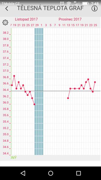 Ahoj děvčata už sem tu dlouho nebyla ale poočku vás pořád sleduju a dneska mi to už nedá a musím vám taky ukázat svůj graf a opravdu nevím co si o něm mám myslet. Podle folikulometrie a kupodivu i mému pocitu sem ovulaci měla 13.12. a dnes nebo v nejbližších dnech by měla dorazit ms což ještě do včerejška potvrzovala i BT ale dnes překvapení BT šla nahuru a přitom sem začala špinit tak nevím jestli si že mě to moje tělo nedělá zas srandu 🙂 🙂 🙂