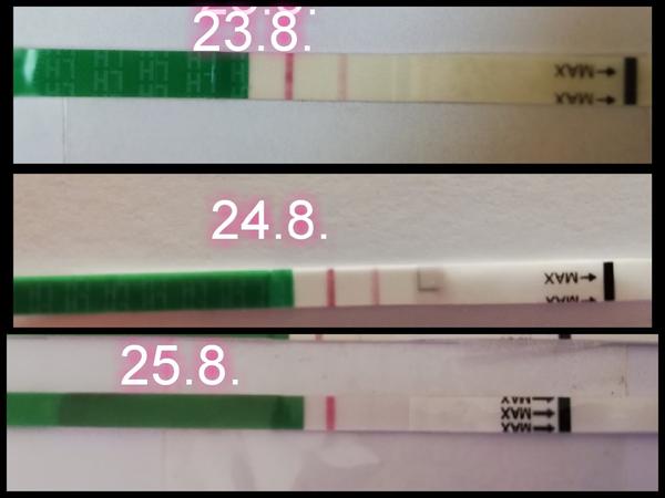 Holky myslíte že včera byl pozitivní? Přidávám i ovu testy minulý měsíc 3.7. Byl podle toho pozitivní ale skončilo to biochemické