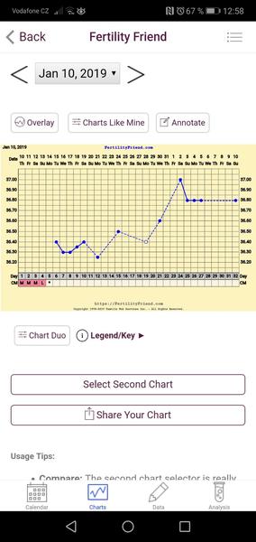 Ahoj holky dlouho sem tu nebyla měla sem moc práce a také nějaké snažení sem vypustila. Protože 20.1. Byl poslední sex a pak jsme dostali ATB protože přítel měl v moči chlamydie tak jsme museli brát na 10dni ATB takže sem to vypustila a bt sem merila tak jak sem vzpomněla a pak pár dní mě nebylo dobře jsem od dcery chytla nějakou chřipku tak sem ani nemerila včera nebo nejdéle měla přijít MS ale stále nic myslela sem ze udělám caj šalvěj aby se rozjela ale měla sem doma testy tak říkám že srandy zkusím tt ale to neklaplo protože ovu přesně nevím kdy byla a brali jsme ATB jenze se mě zdálo že tam něco vidím břicho mě bolelo středa a čtvrtek tak říkám super to přijde ms jenže od patka žádná bolest nic jen sem věcne unavená ale to si myslím že je spíše z té práce jak sem toho měla hodně přidávám testy i graf. A od středy mě pobolivaji prsa což je u mě normální že tak 3 dny před MS bolí a bt 2-3dny před MS klesne :nevim: jediné že by se stal nějaký zázrak :lol: Testy sem dělala Maxe a pepino