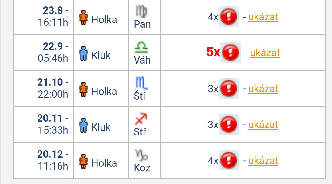 @krisatko Nene, to sem na MK kdysi dávala jedna ze snazilek odkaz, kam zadas datum a čas svého narození a pak ti vyskočí tahle tabulka 😉