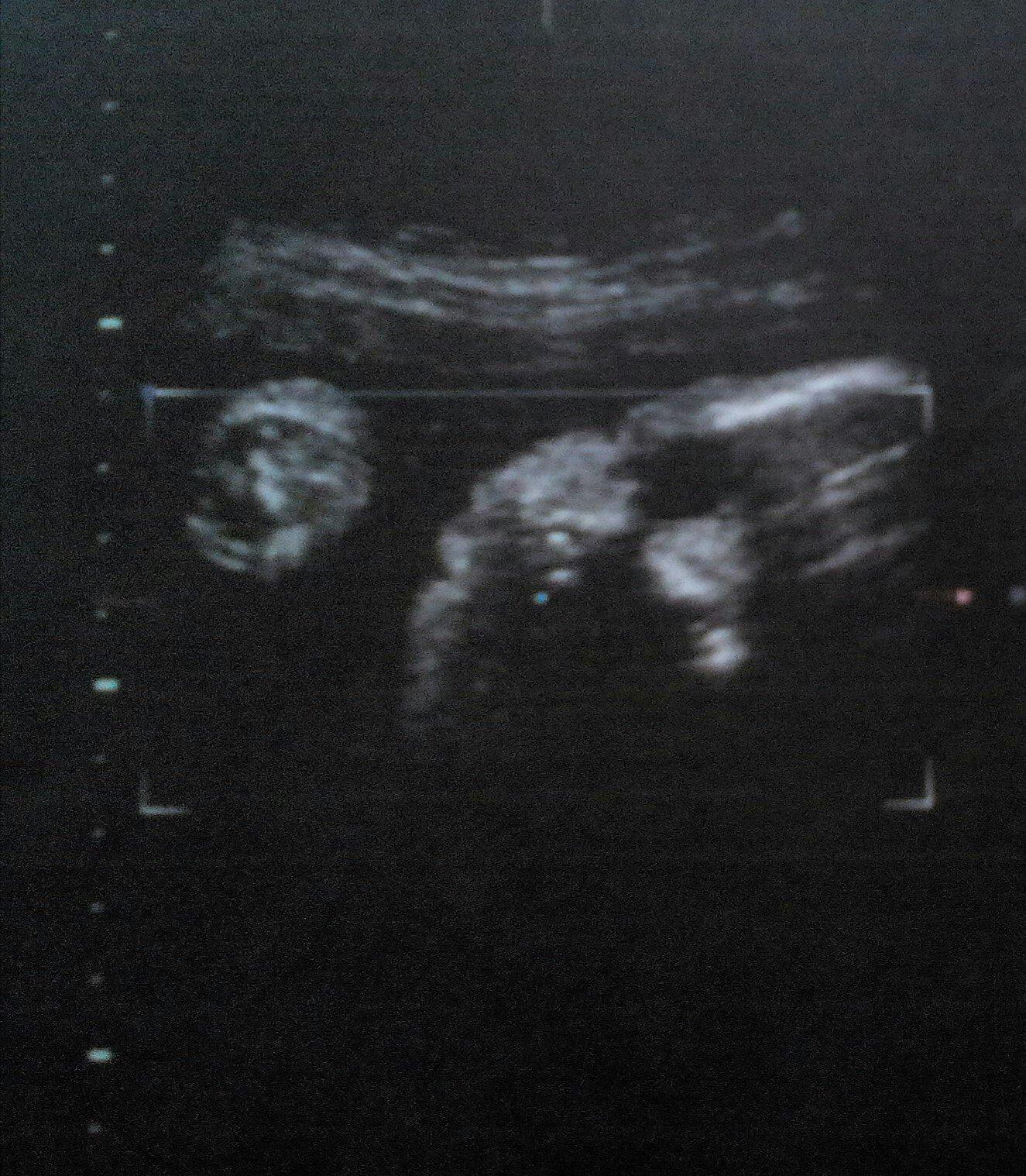 Z celého těhotenství máme jen 2 fotky. Mimčo nepolupracovalo až na týhle fotce se něco ukázalo