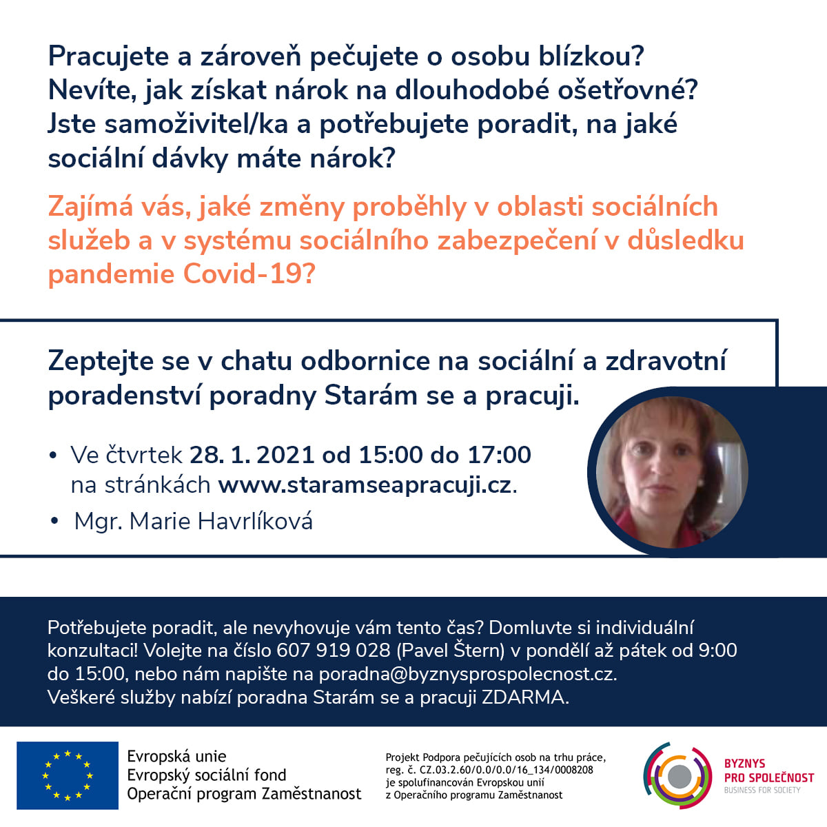 Ahoj a dobrý den!Chci se podělit o tip na poradnu zdarma - pomáhají jak matkám samoživitelkám, tak lidem, co chodí do práce a u toho se starají o staré rodiče. My takhle měli doma babičku a hodně mě mrzí, že jsem v tu dobu tu poradnu naznala.