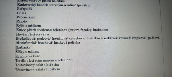 Omáčky, masové kousky, saláty (zeleninové, testovinove), když bys měla třeba zájem o typy na jídla, napiš, nějak to sesmolim ☺️☺️