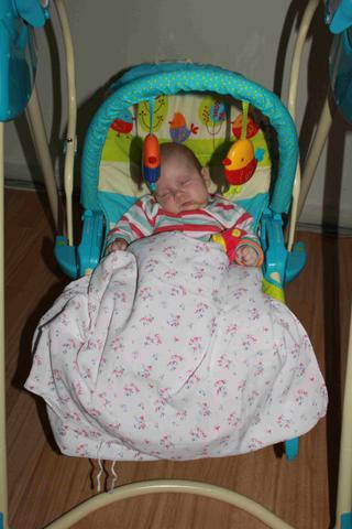 Jinak včera přišel poštou jeden z dárků pro Marušku k vánocům, ale nějak jsem to nevydržela hned jsme ji to dali. Jestli to tak budu dělat se vším, pod stromečkem nebude nic a v peněžence bude vymeteno 🙂 Tak se koukněte jak si to s houpačkou sluší 🙂