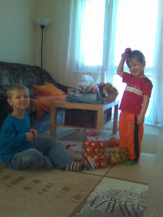 holky pár foteček od těch našich pomocníčků.. dneska si zdobili stromeček já jsem jim pomáhala