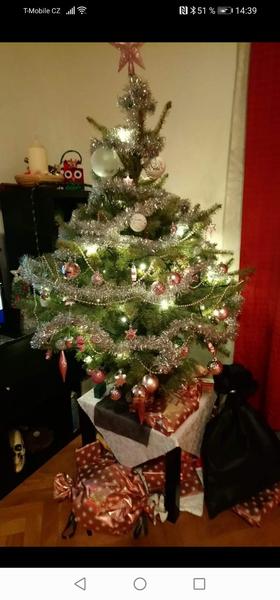 Měli jsme, ale do země se nepodařilo zasadit. Dřív uschnul, voněl krásně...Cena šílená metrový stromek za 800 a ještě dost omezený výběr. Vidina toho, že ho můžeme zasadit u tchýně na zahradě a zdobit časem s dětmi každý rok mi za to stála :D Řezaný co máme běžně cca 1,5m za 350,- udělal ve výsledku úplně stejnou službu.