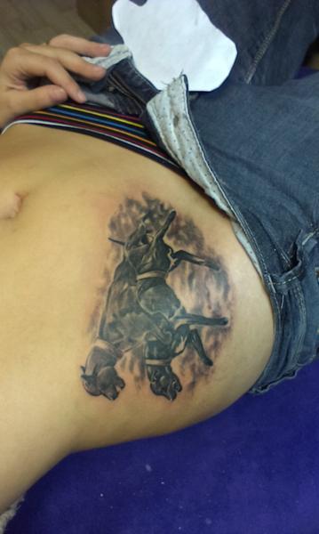 Taky jsem na tetování odjížděla s tím, že bude mít tak max.5-8cm... a domů jsem přijela s tímhle 😀 manžel to moc neocenil, ale mě se to líbilo... Jako všechno, druhej den jsem řešila, jestli jsem neměla zatmění smyslů... a pak jsem otěhotněla... Dneska si z toho dělám legraci, že postupem těhu přejdu z pitbullů na ND, a po porodu se plynule přesunu třeba na sharpeie 😀 😀 😀 už to neřeším, patří to ke mě 😉