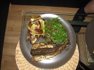 foto 3 - pstruh s rukolovým salátem a parmou a grilovaný lilek a cuketa