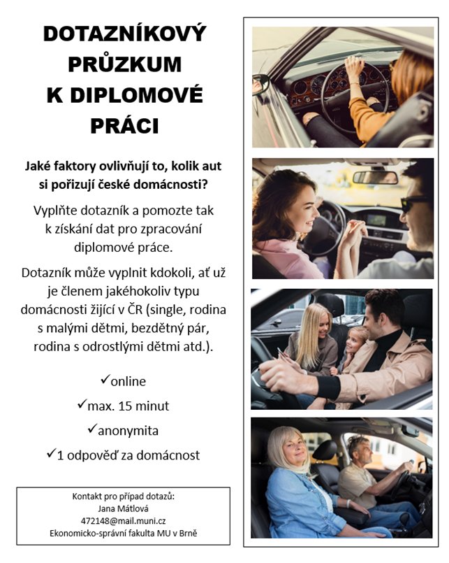 obracím se na Vás s žádostí o vyplnění dotazníku k diplomové práci na téma Počet aut v domácnosti.