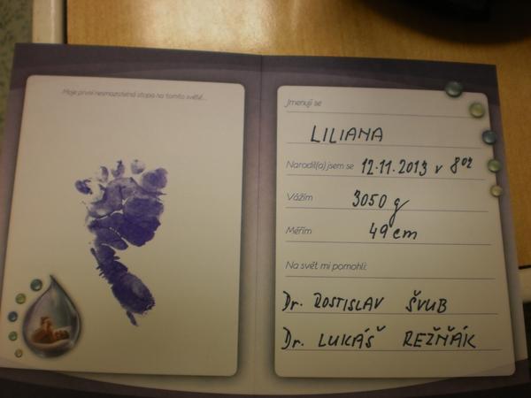 Ahoj holky - zdravím všechny po 10ti měsících. Chci jen napsat, že dne 12.11. 2013 se nám narodila s váhou 3,05 a délkou 49 cm holčička Lili. Je to nádhera, fotky dodám, jen nevím, jestli tady ještě někoho zastihnu a moc vás všechny zdravím a ráda bych, aby jste se občas, při troše času ozvaly. PAPA a pozdravuji vaše dětičky.