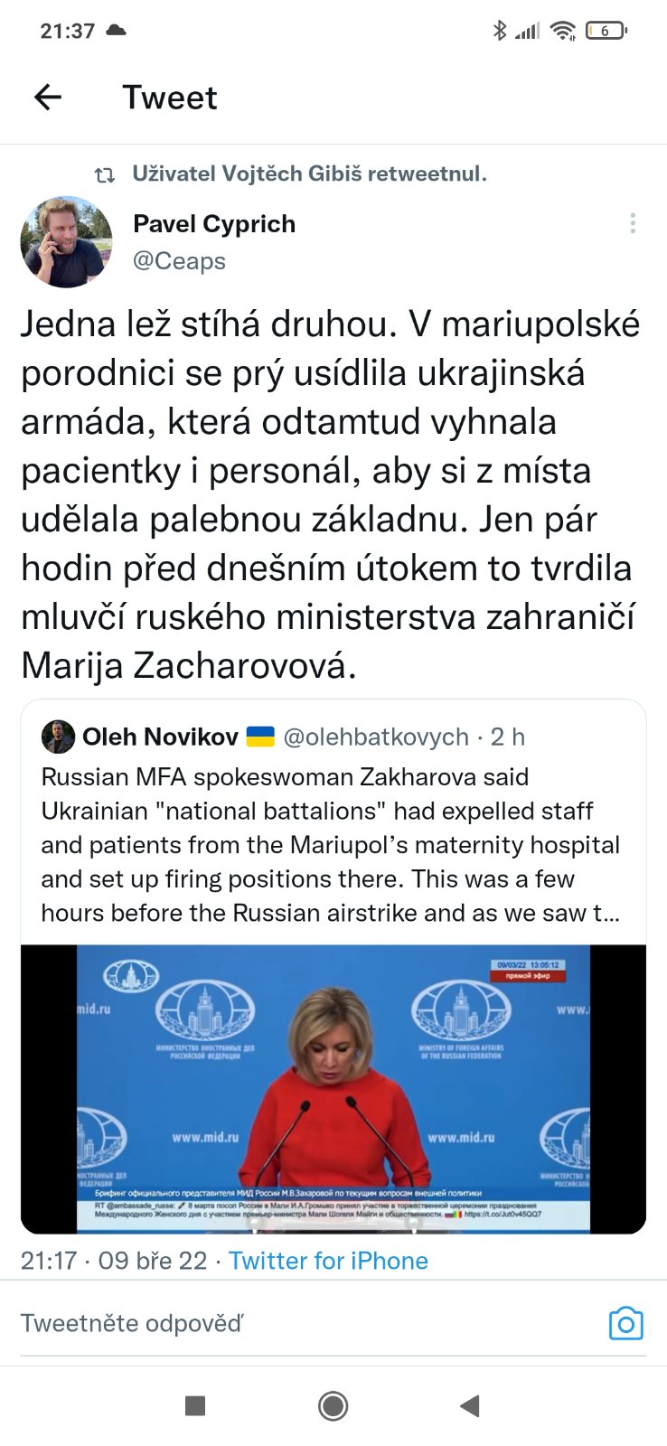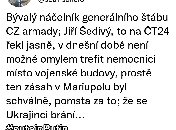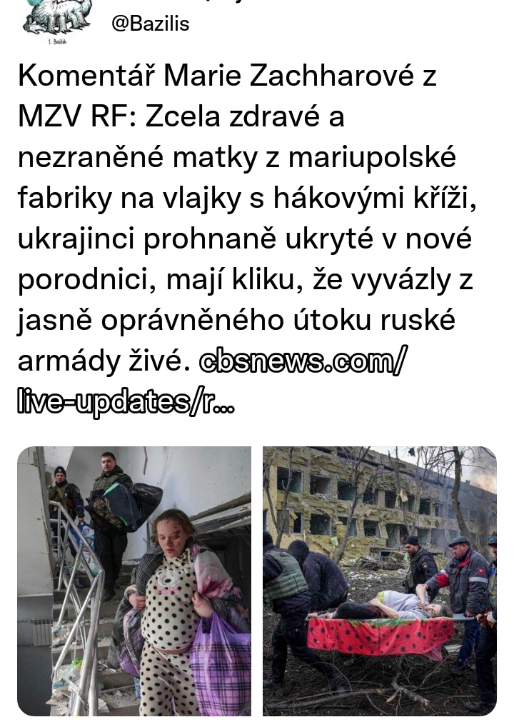 @brunetka11 Dekuji za odpoved. Ten clanek jsem cetla. No jo,ale ja mam pocit,ze ty utoky se stupňuji. Viz ta porodnice dneska. Mam pocit, ze chce prostě Zelenskeho donutit at přistoupí na to co on chce a pokud by Ukrajina pristoupila,nejsem si jista jestli by nastal klid..