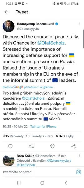 Vestinou dava po komunikaci s jinymi leadery optimistictejsi tweety a dekuje za podporu..