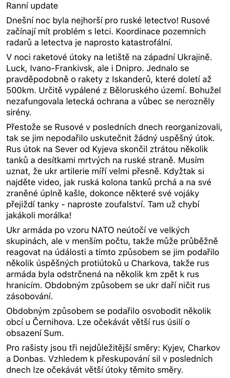 @maciceksta skoro většina anticovid co frčela na sputniku se teď dala do boje proti Ukrajincům. Nejhorší je vždycky srážka s blbcem. Těch sr.aček kolem je spousta. Zcela sadomasochisticky jsem vlezla mrknout do skupinky o přídavcích, kdy většina uživatelek berou xy dávek od státu za jednoho haranta za druhým a vřískají, že jim stát nic nedá a nepostará se o ně. ALE že UA se cpou příspěvky 2500 kč, mají mhd zdarma, vstup do zoo za 1 kč atd. A to vše píšou z pohodlí domova, z mobilního telefonu za x tisíc s připojením na net, pijou u toho kafe a hlavně ze svého domova! Jdu blejt 🤦Už na ty fóra nelezu.