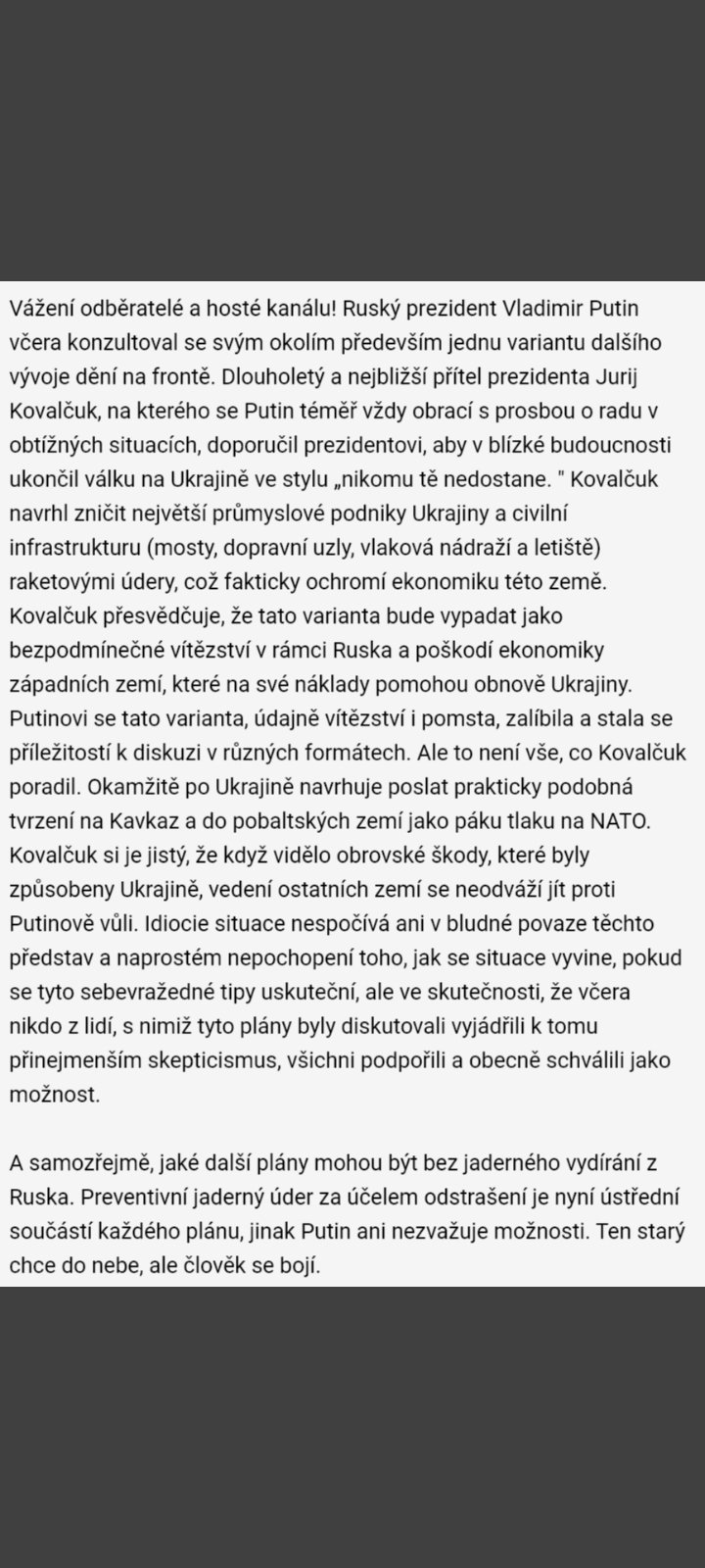 @estelle777 tohle je hlavně hodně blbý. Promiň, nezlob se na me. Ale tohle je proste manipulace nejhorsiho kalibru. Samozrejme ze co se deje je strašný. Ale zavrit nebe nad ukrajinou by téměř jiste znamenalo valku v cely Evropě a ne nutně "pouze" konvenční. Apelovat na emoce je hrozně hezký, ale otevrenej konflikt s rusem nechce nikdo. Ted maji ukrajinci kam utect a eu a nato pomáhá. Hodne. Navic podle tpopisu rusky taktiky rus nepouziva letadla jako zapad a omezuje se vlastne na zasobovani a udrzovani fronty. Bezletova zóna - a ukrajinci nebudou mit kam utíkat.nikdo nebudem. Tedy v Evropě. Je potreba zapojit diplomacii a ne stupnovat konflikt.