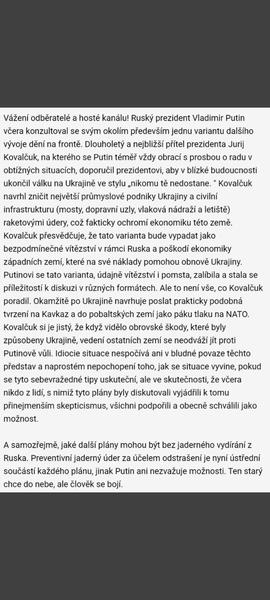 Pro obsáhlost komentářů a špatné načítání a zpětné dohledávání informací zakládám tuto diskuzi. Nově si budeme zprávy psát sem. Dle nových zpráv jsou Rusové v Charkově, kde probíhají boje v ulicích.