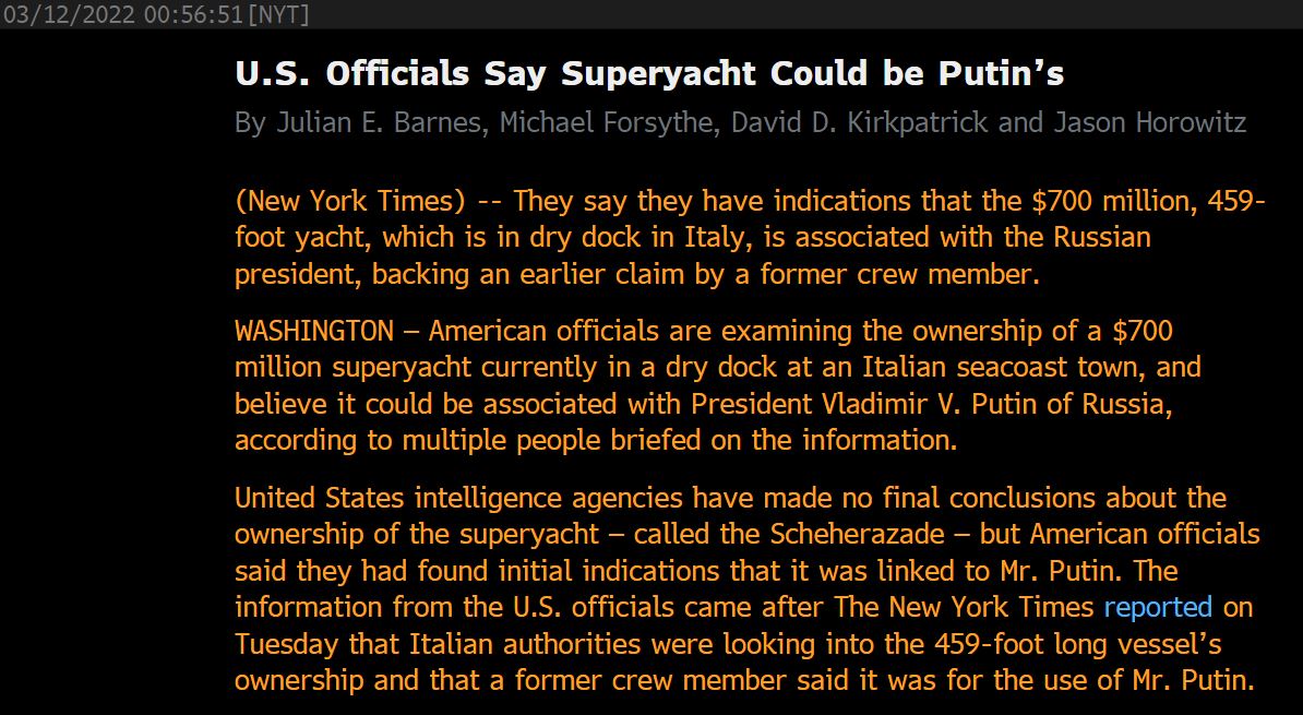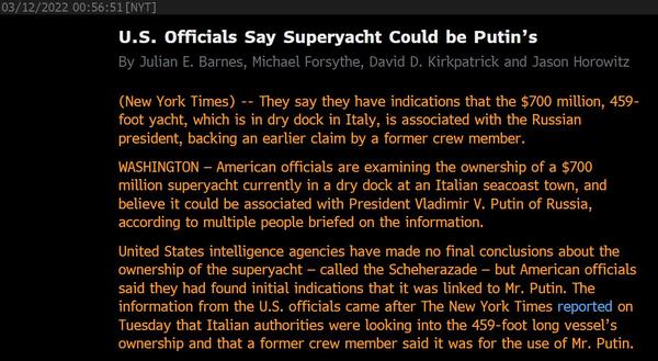 Zdá se, že Putin přijde o svoji superjachtu. Loď Šeherezáda, za 16 miliard korun, je teď v Toskánsku. Loni i předloni ale podnikala výlety do Soči, kde se v té době ruský prezident skrýval před covidem. Američané mu loď s posilovnou, zlatými umyvadly či dvěma heliporty připisují. https://t.co/DGy6YHgmHf