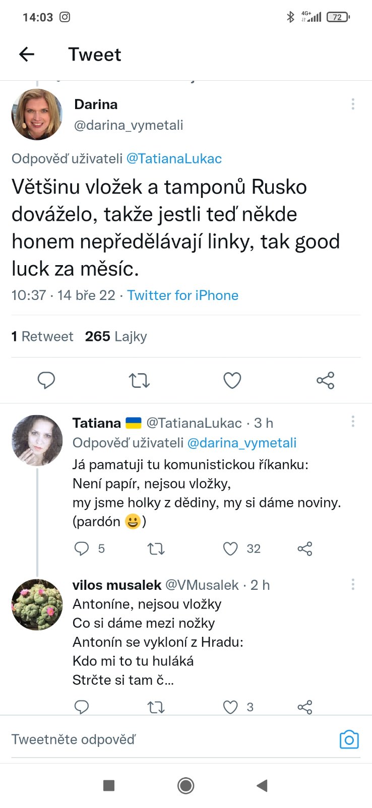 Většinu vložek a tamponů Rusko dováželo, takže jestli teď někde honem nepředělávají linky...
