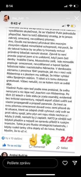 @asongforfay katastrofou pro lidstvo a momentálně pro Ukrajinu, jsou bezmozci jako ty... Mít na věci svůj názor, je právo každého, ale nepoznat zlo, nebo ho obhajovat, i když ne napřímo, ale co si budem, když hovno zabalíš do dárkové krabice s mašlí, stejně smrdí a chce se z něj všem blejt, je hodný fakt nějaký basy..a to je případ tvých neomluvitelnych příspěvků...schovat jasný souhlas s tím co se tam teď děje za ALE.... Odpornost.. Pořád nějak nemůžu uvěřit, že to lidi jakkoli znevazujou.. Že to buď nesledují, nebo tomu nerozumí, tak to nekomentují, že to vypustí z huby lidi tam,kteří opravdu neví, co se ve světě děje, to se dá pochopit... Ale když to někdo sleduje, není prostor na žádné ale.. Mně je tak zle z tý situace, ale ještě víc mě ničí lidi, co jsou takhle strašně zlý a nechutný