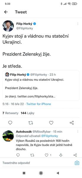 Teď na ČT24, že se v kuloárech povídá, že Macron je dost naštvaný z Fialovi a spol. cesty do Kyeva. Chtěl být mediátorem, ale tohle ho nenapadlo, místo toho furt visí s Putinem na drátě..