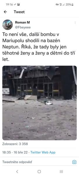 @pratensis Strašný! Je mi úplně špatně. A bojím se, že těhle zvěrstev bude přibývat... Rusáci zase řeknou, že tam měli sídlo vojáci nebo tak něco a spoustu lidí tomu zase uvěří a pak si tady na MK zase prečtu, že ukrajinští spratci mají výhody...