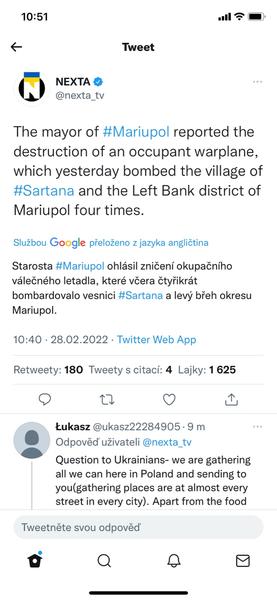 Mě zneklidňuje zpráva o výzvě ruského velení směrem k Ukrajincům k opuštění Kyjeva. Aby nechystali nějaký drsný úder. Takhle můžou tvrdit, že civilisti měli možnost město opustit. Nedovedu si ale představit, jak by se takové množství lidí mohlo reálně někam bezpečně přesunout a tam se ukrýt...