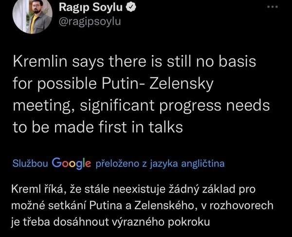 Taky si dovolím off topic- zajímalo by mě velmi, co Putin na to, že stvořil ze Zelenskyho superstar...musí zuřit! člověk, co ani doma neměl 100% podporu, asi čekal, že uteče a půjde rychle ke dnu, ale ono ne, fotí se v centru Kyeva bez vesty a helmy, v nemocnici, dává rozhovory, jedná s celým světem a říká si co potřebuje a to taky dostane, všichni chtějí být v jeho týmu teď...dává to sežrat němcům, izraelcům za to, že otálejí, Macron neexistuje skoro 😀