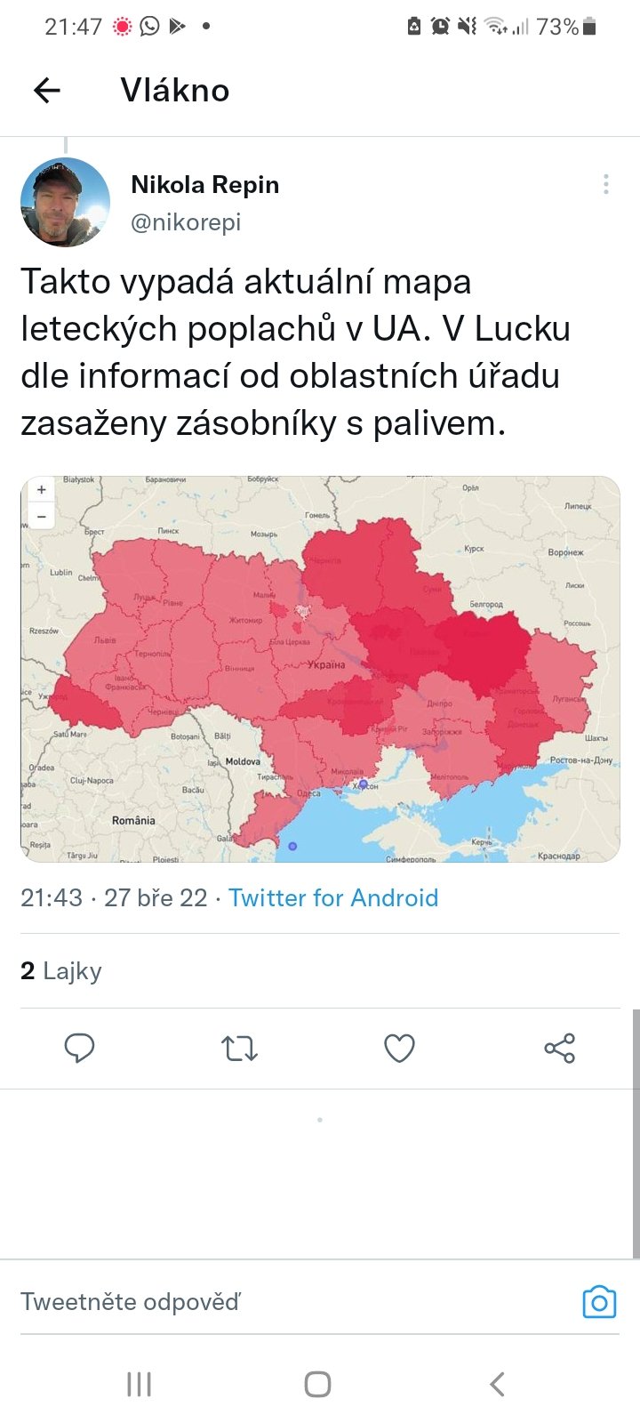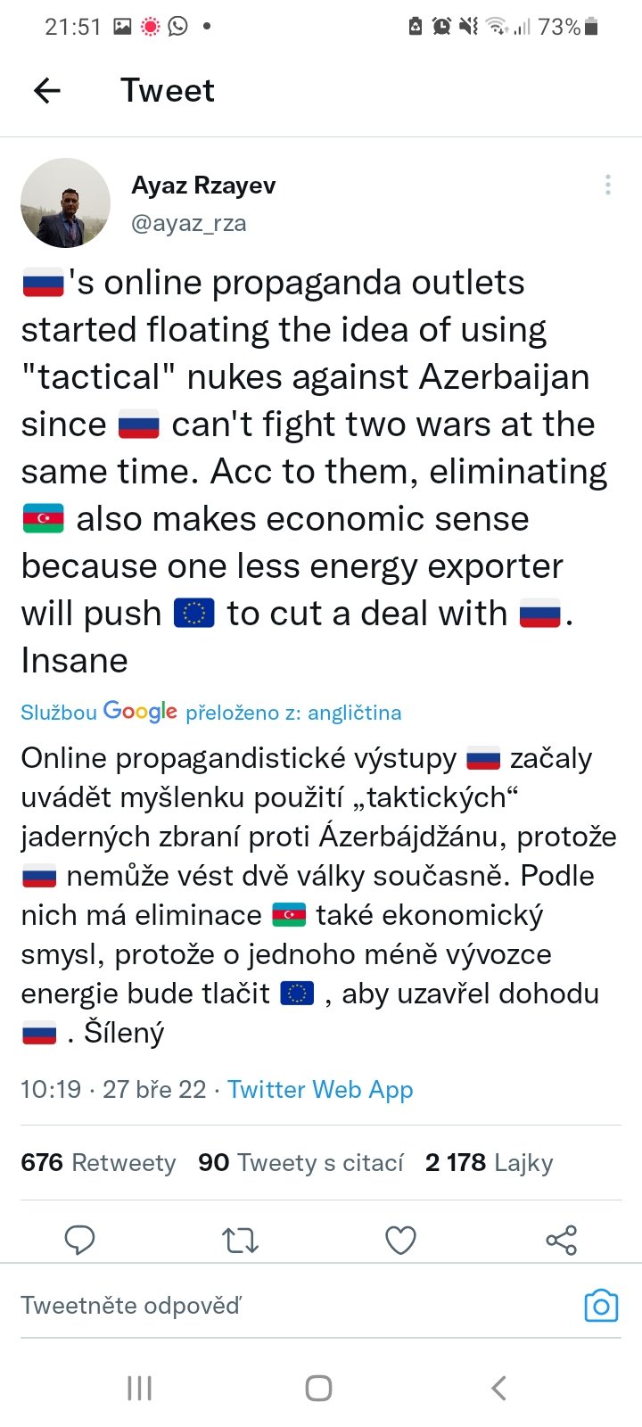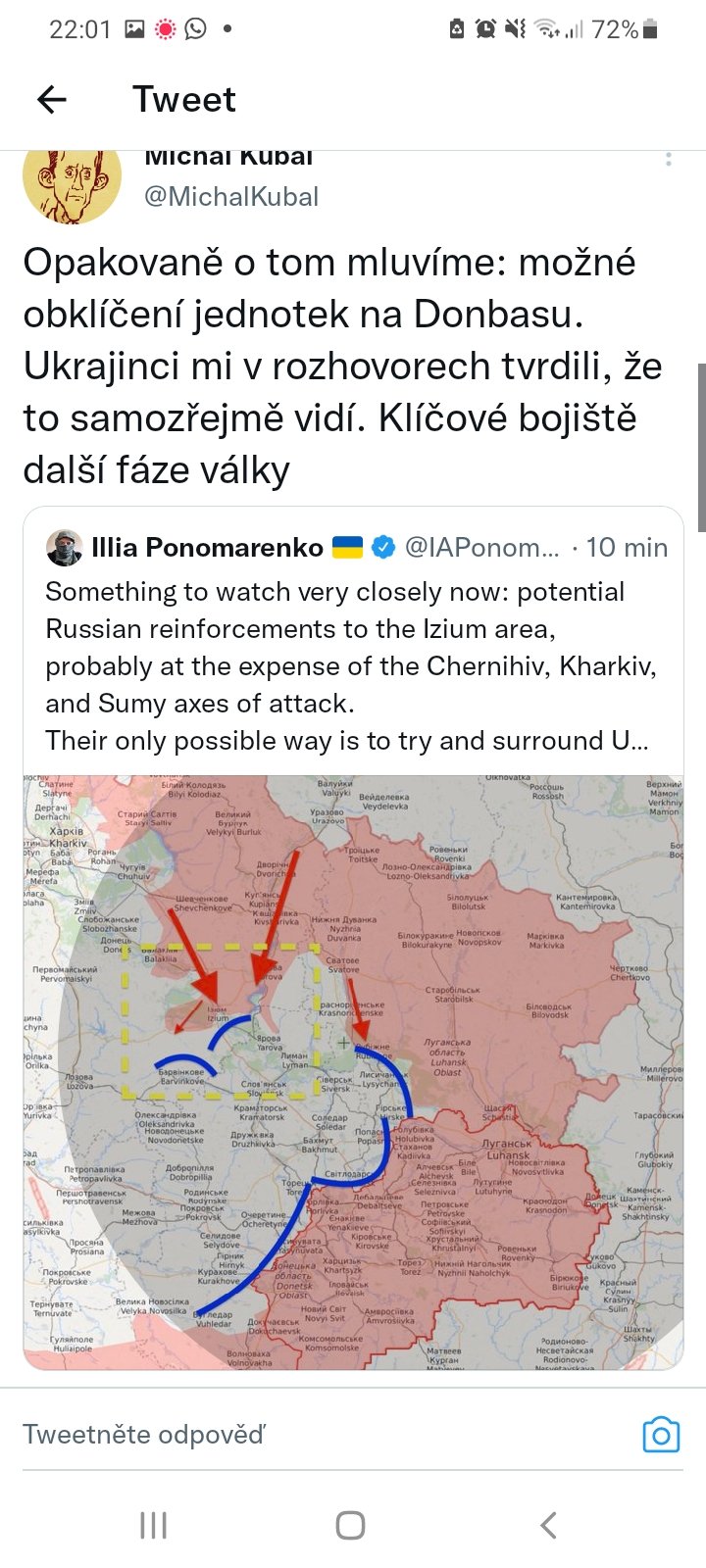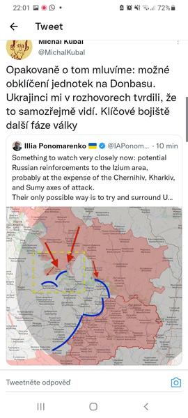 11. Pokud toužíte jen po stručné a přehledové informaci, vcelku použitelný zdroj je britské ministerstvo obrany, které kombinuje mapy (https://twitter.com/DefenceHQ/status/1508014540...) a obecně poměrně střízlivé shrnutí/predikci nazývané latest defence intellingence update (https://twitter.com/DefenceHQ/status/1507953408...). Dávají to každý den.