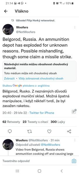 Pro obsáhlost komentářů a špatné načítání a zpětné dohledávání informací zakládám tuto diskuzi. Nově si budeme zprávy psát sem. Dle nových zpráv jsou Rusové v Charkově, kde probíhají boje v ulicích.