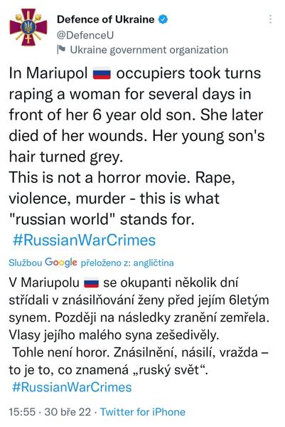 Děkuji @pampeliska1313 za odkaz na článek, resp. rozhovor. Dovolím si upozornit zejména na poslední otázku a odpověď v rozhovoru. V naprosto stejném duchu jsem asi před dvema týdny slyšela na Českém rozhlasu rozhovor s Milanem Uhde či Michaelem Zantovskym (omlouvám se, paměť mě zradila), kde se přesně toto zdůrazňovalo. A připomínala se myslenka Václava Havla, kterou pronesl během projevu v roce 1990 před americkým kongresem - "Když chcete pomoct nám, pomozte Rusku"