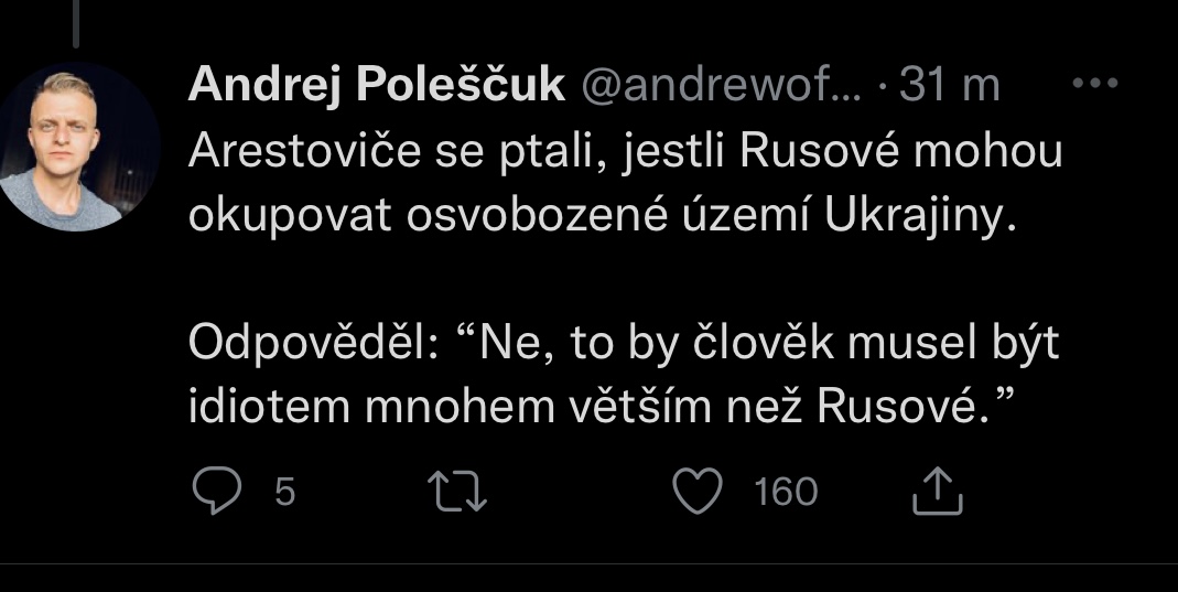 @pajula123 holky já to pustila a nečekala jsem to až takové,jako to malé dítě,to mě teda semlelo,jak ti zm**i ruští můžou pořád tvrdit,že oni nic takového neudělali,že to dělají sami ukrajinci,chce se mi zvracet co vypouští z úst za výblitky.....