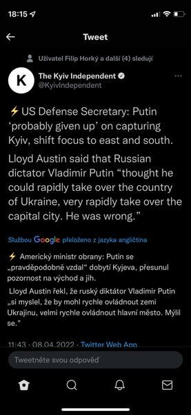 Kuleba komentoval zabíjení ruských zajatců. Neobhajoval to, samozřejmě. Ale říkal ze to nemůžou pochopit lidi, kteří nejsou svedky tech zverstev. A js si zas myslim, ze to pochopit dovedou. Já si totiž nejsem třeba úplně jistá , jestli bych na místě ukrajinských vojáků, kdybych viděla to co oni, dokázala projevit tolik sebekontroly....