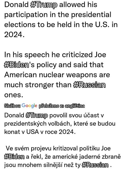 @amenophus Já věřím že to Le Pen nevyhraje. Možná to bude těsný (už to je špatný), ale nebude mít většinu. Ty průzkumy byly těsný i před 5 lety, měla jsem z toho tehdy takovej vítr, že jsem si radši konečně vyřídila to strašný papírování s francouzským občanstvím, aby mě náhodou pak nevyhostila. A nakonec prohrála dost výrazně. Pořád ještě doufám že nejsou Francouzi úplný kreténi. A Macronovi se dá vyčítat lecos, ale na stranu Ruska se nepostaví určitě, to je jistota. A on má taky v ruce červený tlačítko.