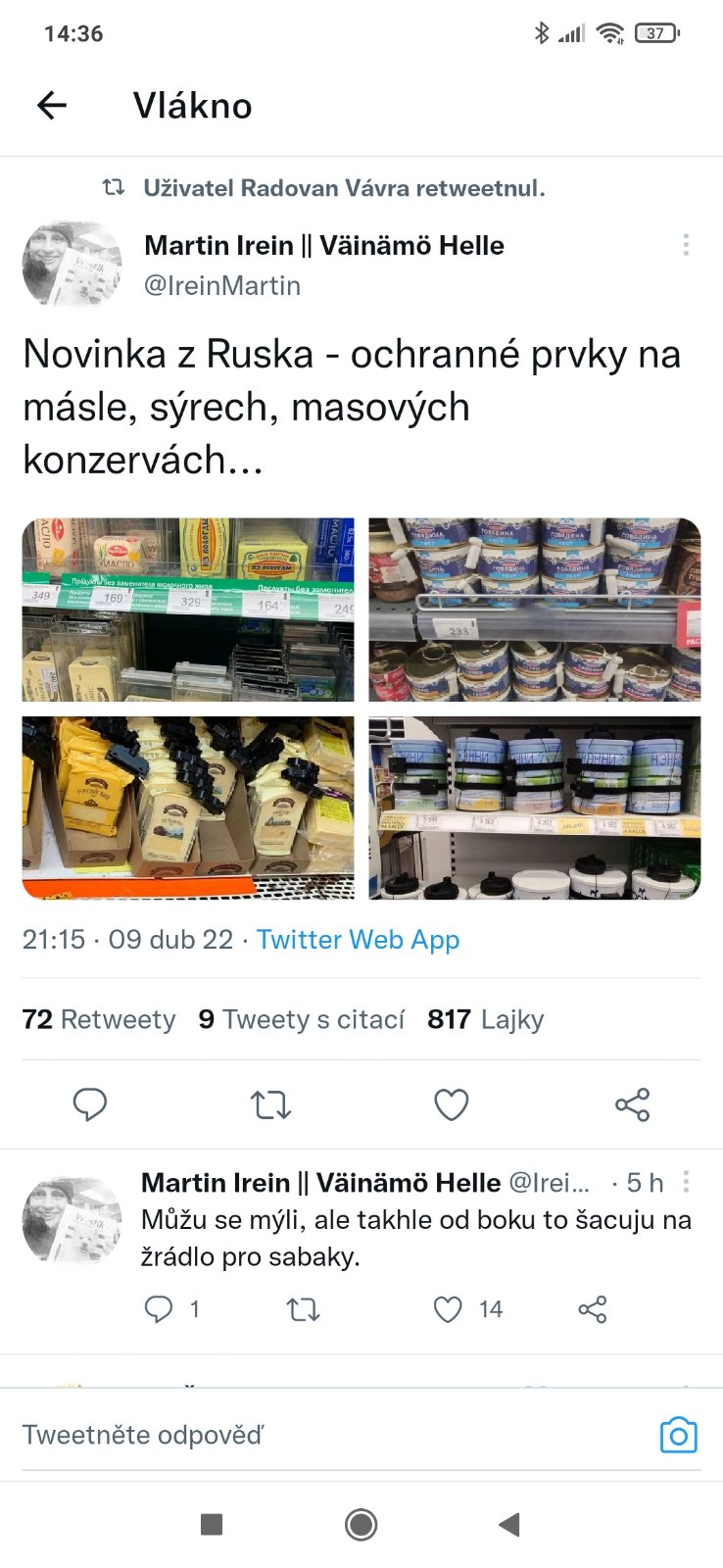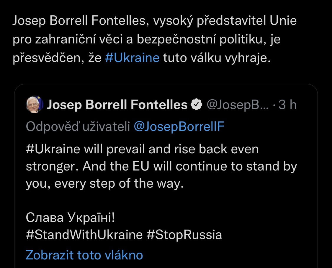 @pampeliska1313 za mě o tom, jak se bojí NATO, svědčí i to, že zatím nezaútočili na jedinou dodávku zbraní, která za Západu na Ukrajinu jela. A to se tu rozkecalo, kde co, naše tanky, slovenský systém protivzdušné obrany, 100 tanků z Polska, teď zbraně sovětské výroby posílá Kypr. Kdyby byli tak namachrovaní, dávno raketou jeden z nich sejmuli.
