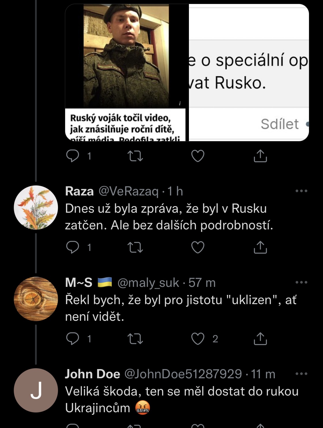 @sebestka A to ja jsem vetsi krutas. Mym pranim je, aby pohorel i na jihovychode Ukrajiny a pak zil v naproste izolaci a strachu dalsich par let. Kdyz se takovy psychopat zacne bat o kejhak, jsou to pro nej ta prava muka.