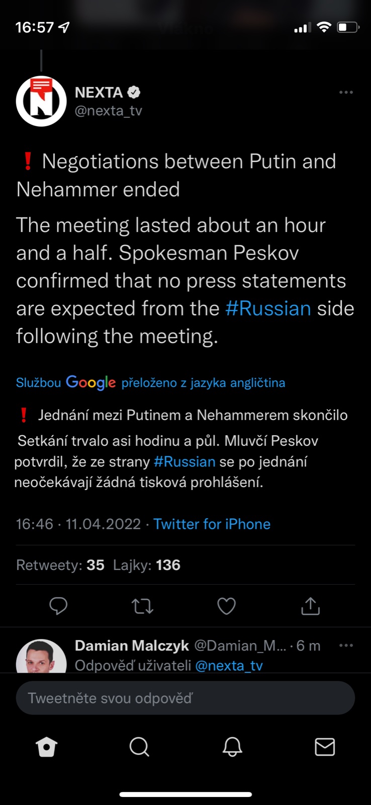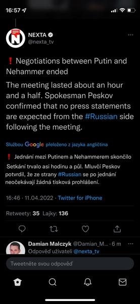 @pampeliska1313 taktez. Nevim, jestli to byl nejlepsi clovek na vyjednavani, kdyz mu tam mluvil o bozich mlynech, na to P. urcite slysi 🙄 Prijde mi, ze prijel dost vypsychovanej, jako by nahledl do oci ciremu zm*dstvi.