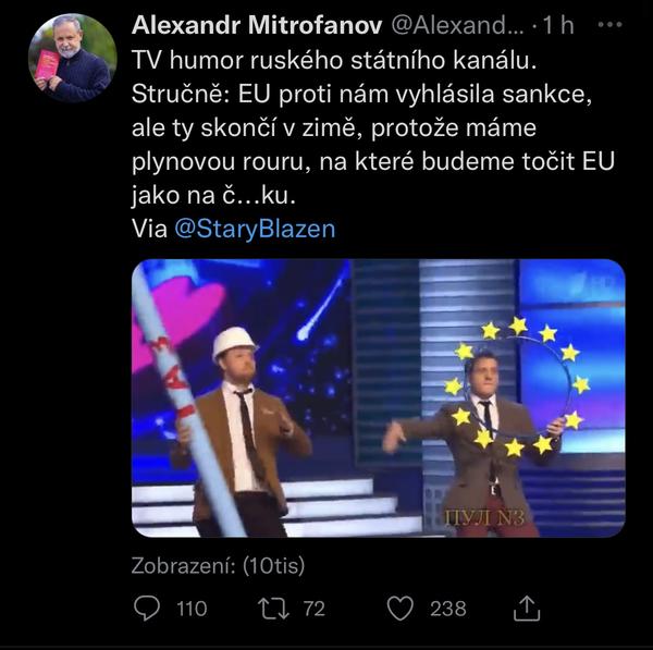@alamo teď jsem se podívala na to video Rusa Romana a je to skvělý. Škoda, že tyhle mladé Rusy není vidět a slyšet víc. I v komentářích tam někdo psal, že mu mluví z duše, že je přibližně stejně starý a vnímá to stejně.