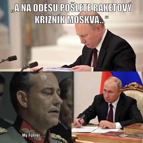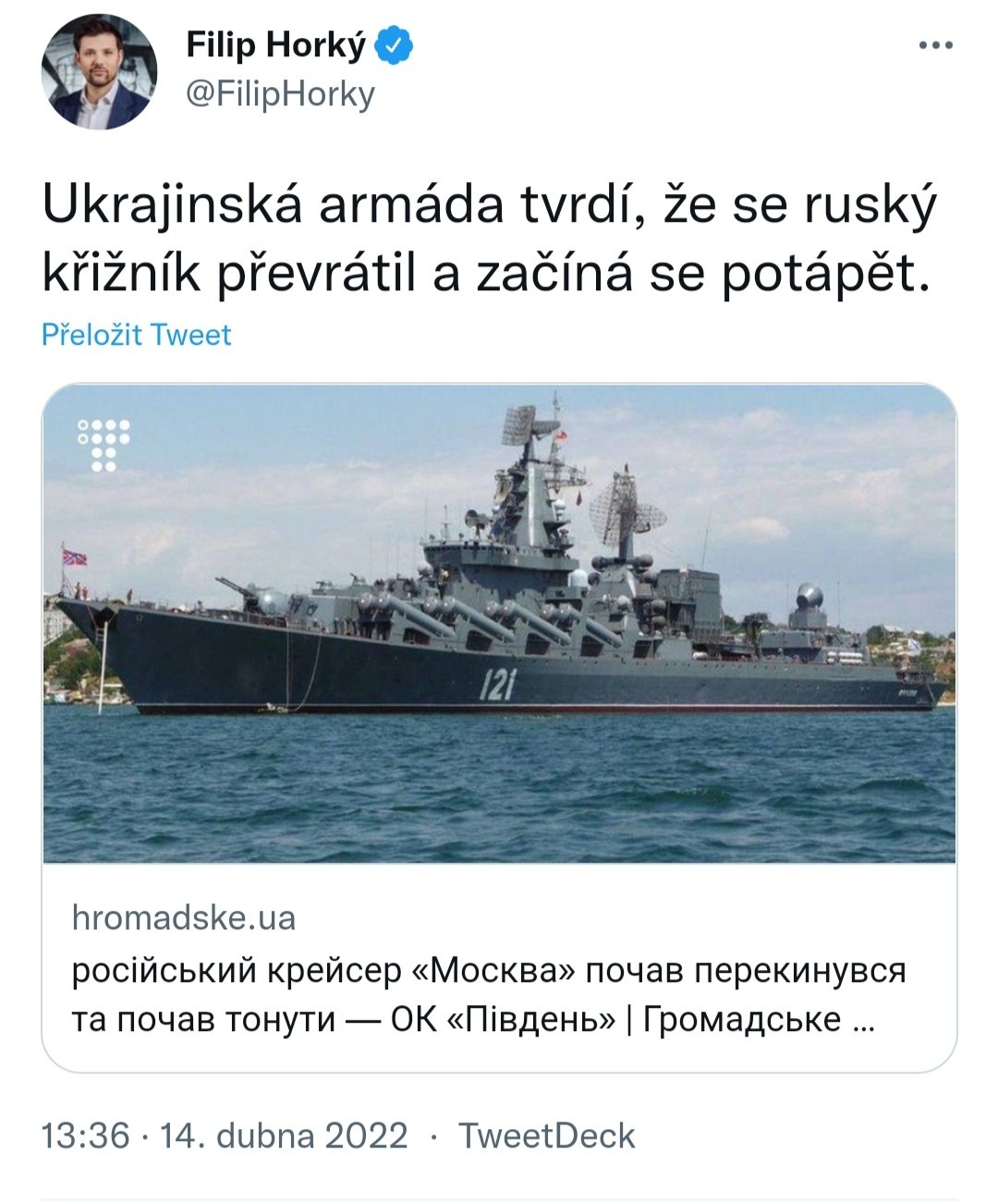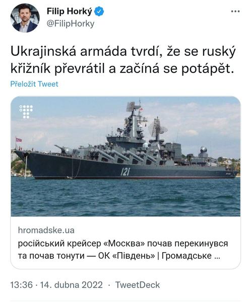 Vlajková loď Černomořské flotily Moskva hoří.