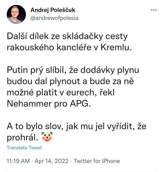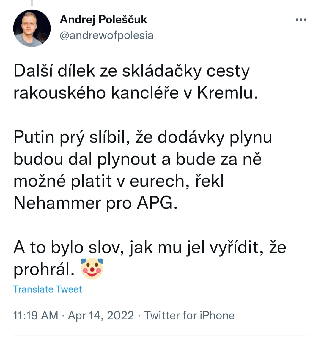 @pratensis @ilci @mary.jane me prijde ze tam neco bylo zrraceno v prekladu a i na zacqtku clanku rika, ze jeho navsteva nebyla ocekavana, ne ze nebyla zadouci. Celkem to dava smysl - pri takovych statnickych navstevach toho musi hodne chystat aby zajistili jejich bezpecnost a pokud jsou pripraveni na 4 a najednou na ne nekdo vybali ze jich bude 5, neni se co divit ze na UA strane vznikne panika. Vzdyt to by byl takovej pruser kdyby se tam neco stalo kancleri Nemecka! Bylo od nej dost nezodpovedny ze to chystal jako prekvapko...