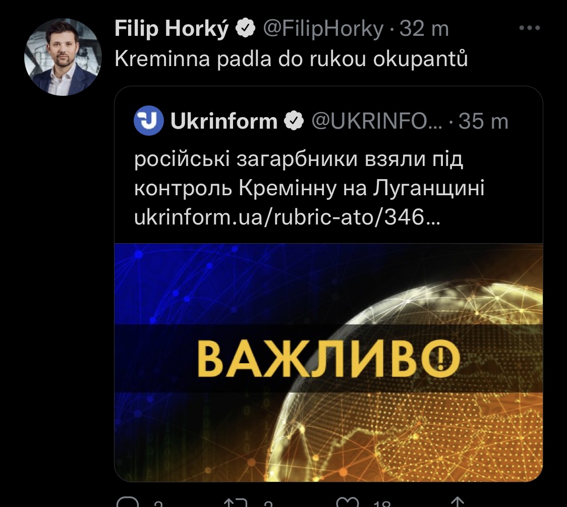 Pro obsáhlost komentářů a špatné načítání a zpětné dohledávání informací zakládám tuto diskuzi. Nově si budeme zprávy psát sem. Dle nových zpráv jsou Rusové v Charkově, kde probíhají boje v ulicích.