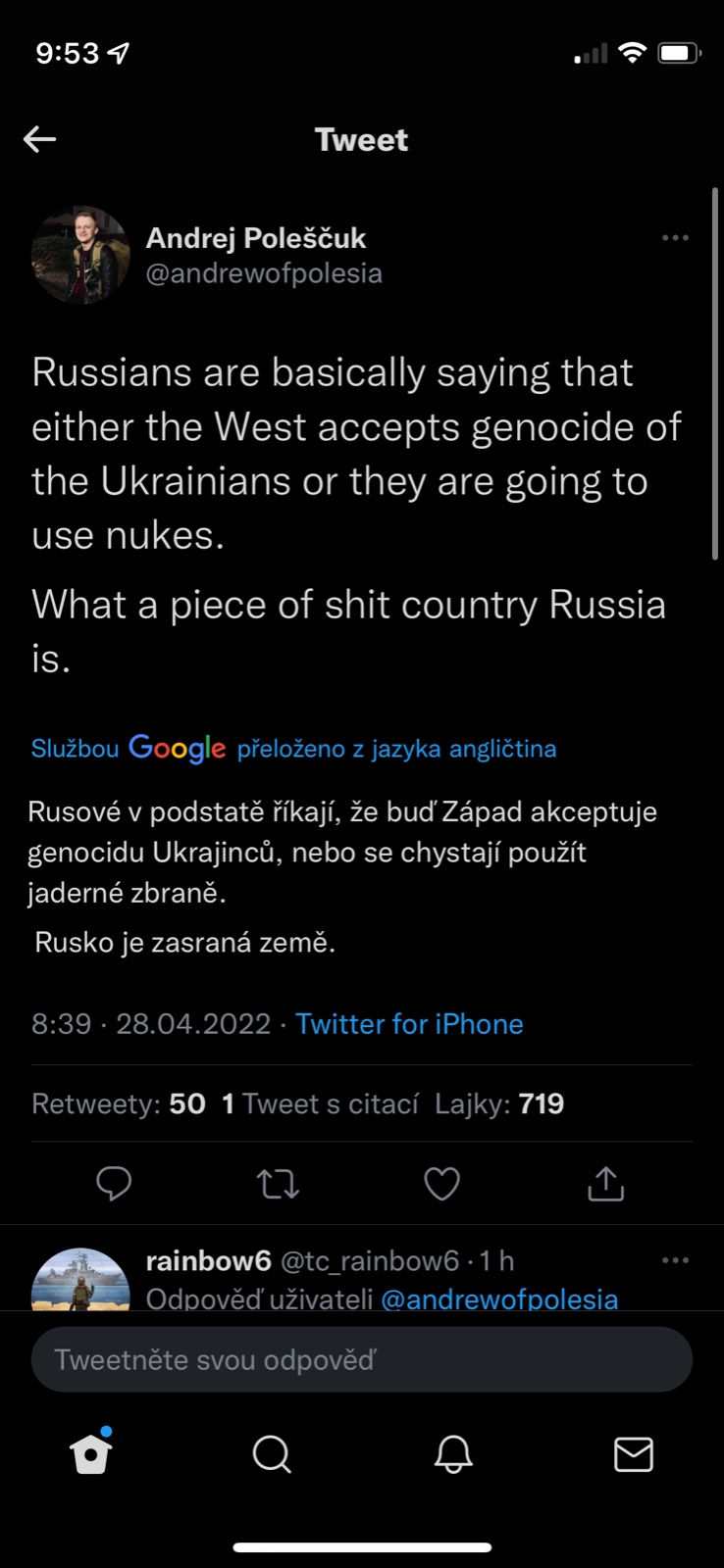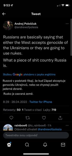 @levandule_k Rusak ví, že kdyby nebylo jaderných zbraní v jeho držení, tak by si nedovolil ani zbla. Vystrčil by nos za hranice a tak by dostal po držce, že by se vrátil do 15.století.
