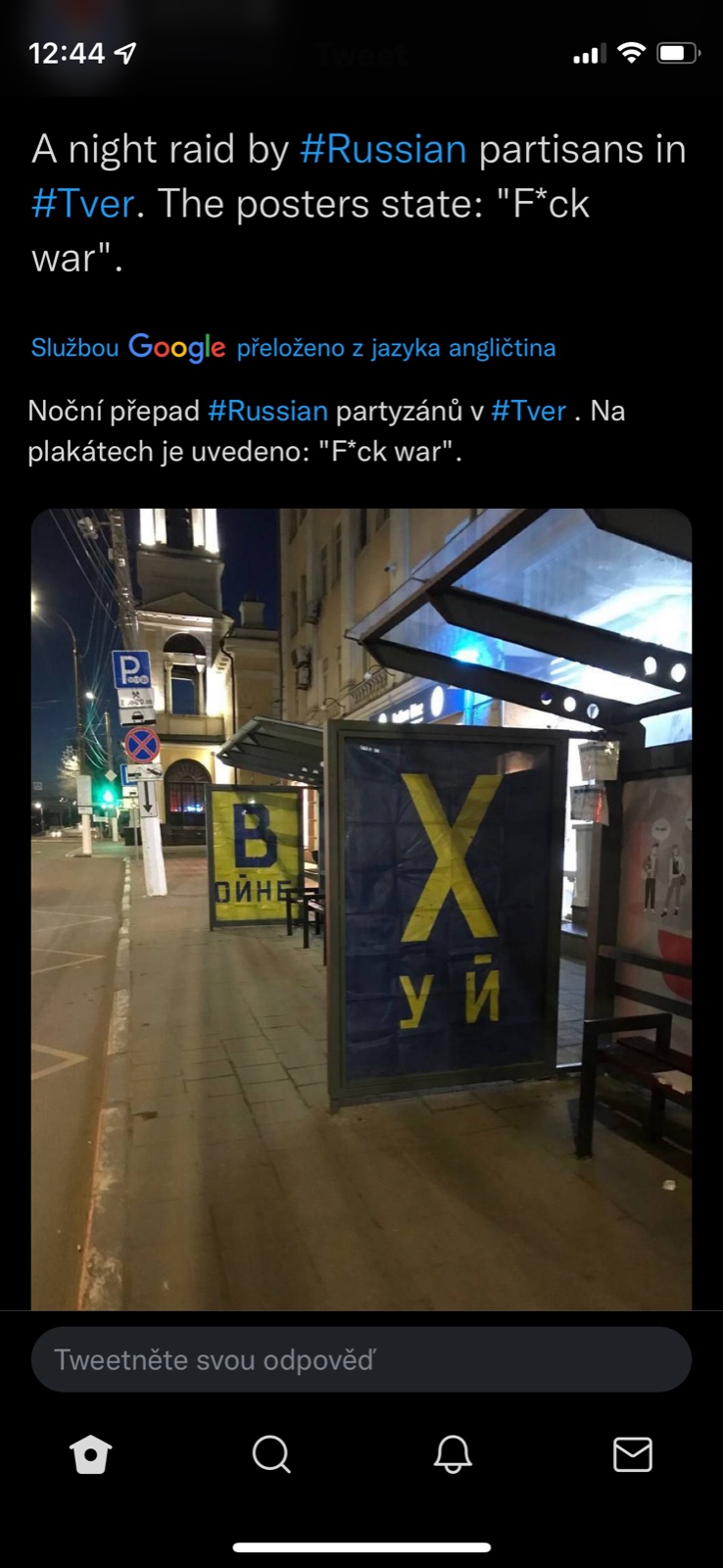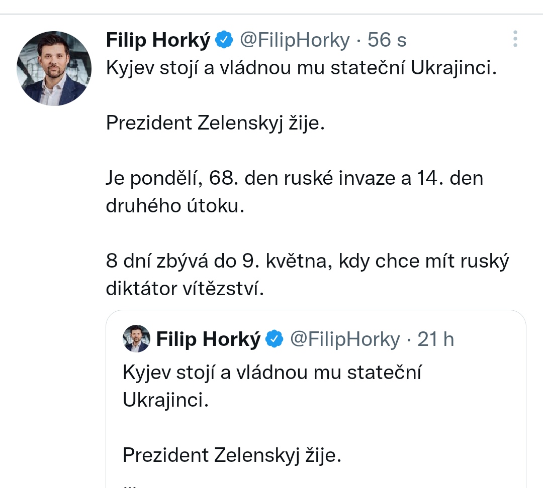 Twitter Filip Horký: Rusové v nemocnici v Luhanské oblasti ukradli plicní ventilátory.
