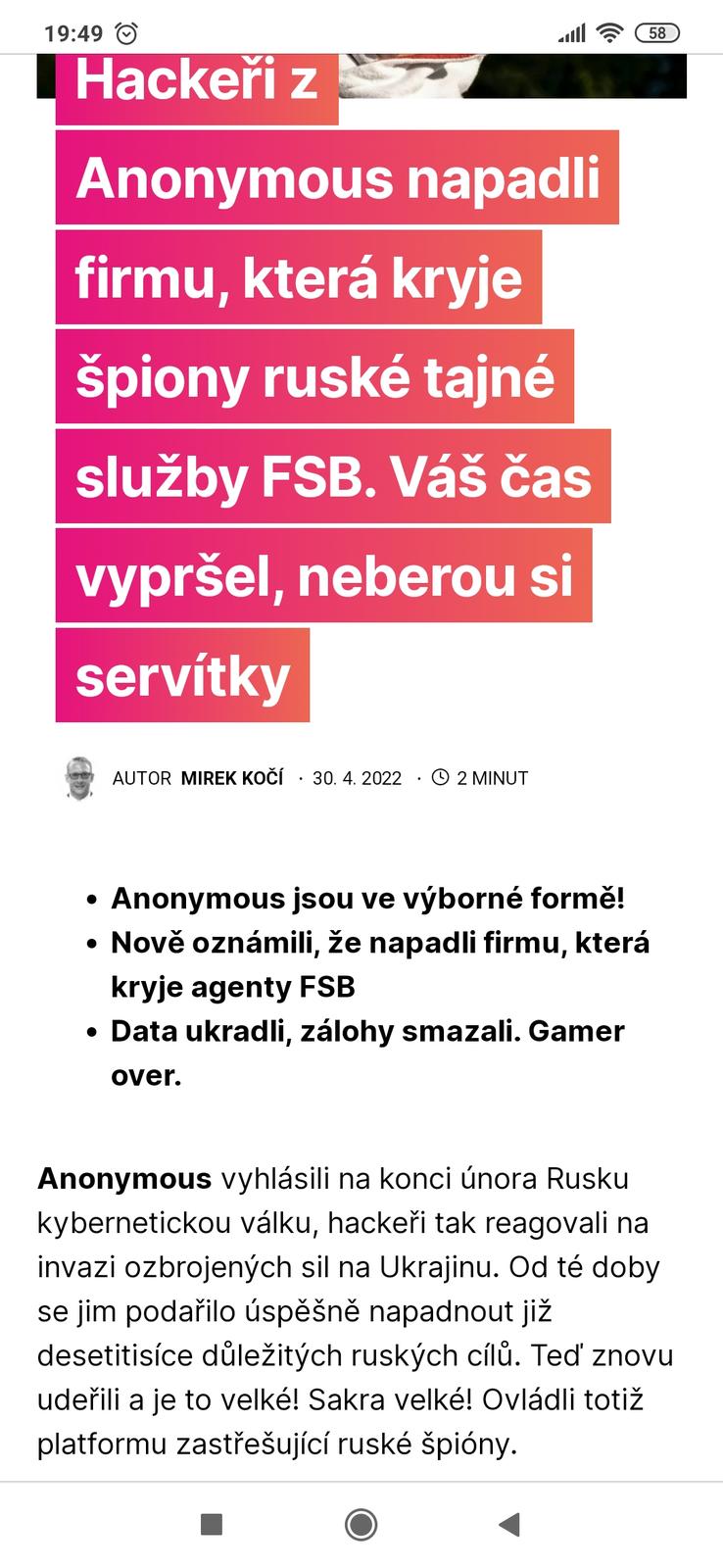 @odula tohle mi prijde jako by byl prepis nejakeho mozna umirneneho, ale presto vladou kontrolovaneho ruskeho media. Jak se Rusko porad mermomkci snazi vyvolat dojem, ze nebojuji s Ukrajinou (protoze zadna Ukrajina preci neexistuje a Ukrajinci do toho nemaji co kecat), ale s USA a strasne se snazi vyprovokovat NATO do valky. Zcela v tom clanku ignoruji postoj Ukrajincu a to, ze Biden se do toho zacal michat az po chvili a vyraznem natlaku ze strany Zelenskyho, potazmo verejneho mineni vsude na Zapade (zmobilizovanem Zelenskyho projevy). Vzdyt USA je primarne od valky odrazovali a chteli Zelenskyho evakuovat, naproti tomu jsou to rusove kteri si v televizi honi triko jak hodi atomovku na New York. Tenhle clanek vyzyva k tomu, aby si USA a Rusko rozdelili vliv na Ukrajine, coz je rusky uhel pohledu. Ale.copak to chceme? Ja myslela ze v nasem zajmu je nezavisla Ukrajina, ktera se sama rozhodne jestli chce nebo nechce do NATO a EU a jestli nejake sve uzemi podstoupi nebo nepodstoupi Rusku a nikdo jiny ji do toho nema co kecat. USA muzou byt pritomni jednani jako garanti bezpecnosti, ale ne jako vyjednavaci strana. Clanek vyzyva k akci o UA bez UA, takze na nej nahlizim jen jako na dalsi kousek ruske propagandy, byt mozna exportovane (a holt kdyz uz v Cechach nejde Aeronet, museli to opublikovat jinde).