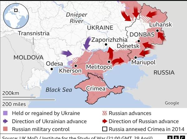 PS tahle mapa je stará , ale vlastně dělá dobrej point. Tam kde byly " russian advances" jsou už teď Ruskem kontrolovany území. Když tak si vygoogli lepši, já v rychlosti nenašla jinej JPEG.;)