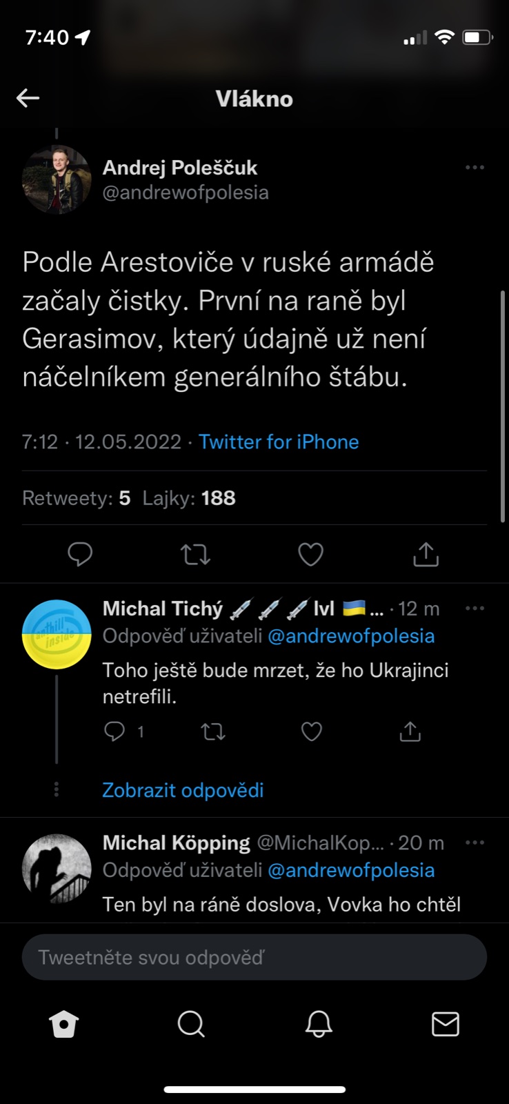 @odula Že by byl až tak schizofrenní, že by sám sebe označil za polomrtvolu, jo? 😅 Další varianta je, že je to úplně běžný člověk, který čte v bulváru, co se nejvíc řeší, a o tom píše své domněnky, jak o tom nejbližší okolí Putina i on asi smýšlejí..