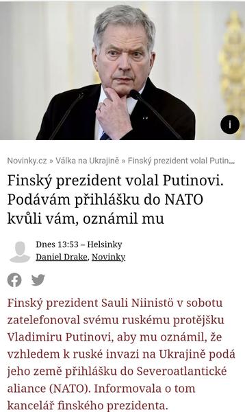 @terinka86 sesadit Putina a hodit to na nej by bylo idealni, ale pusobi to jako zbozne prani. Ja byt UA? Nelibilo by se mi to, vubec ne. Ale jaka je alternativa? Konec zapadni civilizace. At uz postupnym vycerpanim ekonomiky nebo nahle jadernym uderem. Zadala bych vratit Krym (strategicke misto vyznamne pro ekonomiku), Mariupol (ti obranci si to fakt zaslouzi). Ale nekde na Donbase, kde uz se valci 8 let a lidi i podniky odtamtud odesli s tim, ze uz se nejspis nevrati? Jako statnik bych po peclive kalkulaci par desitek km ctverecnich obetovala. Zkusila to - myzou rict "vysli jsme vam vstric ve vyjednavani, byli jsme ochotni kompromisu a ukonceni valky, berte nebo nechte bejt" a rusko by bylo blby, kdyby to nevzalo. Je to maly ustupek a velka vyhra pro Ukrajinu, ktera si za ty 2 mesice ziskala mocne spojence a zuska zpet strategicka uzemi, pro cely Zapad, ktery si ujasnil priority, spojil se a zocelil, a pro Rusko, kteremu diky prijeti techto zadnich vratek zustanou jeste nejake zbytky armady a prizen obyvatelstva a budou se moct chlubit jak dobyli uzemi (aniz by priznali ztratu tech okupovanych casti).
