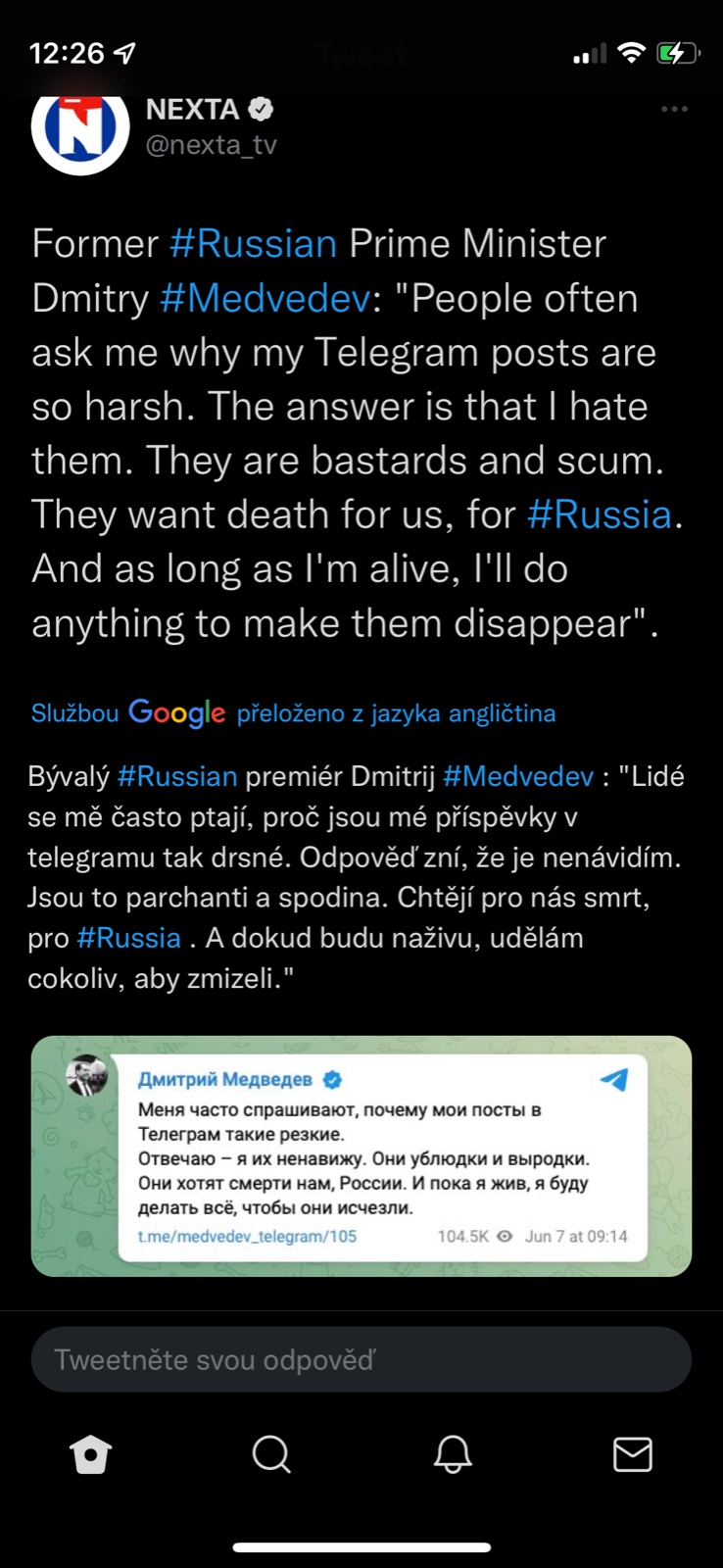 Ještě k tomu velvyslanci co odešel ze síně - pamatuju si, když se vyjadřoval chvíli po začátku války.. a že byl do tý doby údajně fajn kopa, která byla ve společnosti oblibena a “bylo poznat, že nevěří tomu co čte z papíru” … Říkám si, jestli ho to vnitřně žere a boji se vystoupit, nebo je taky zblblej.