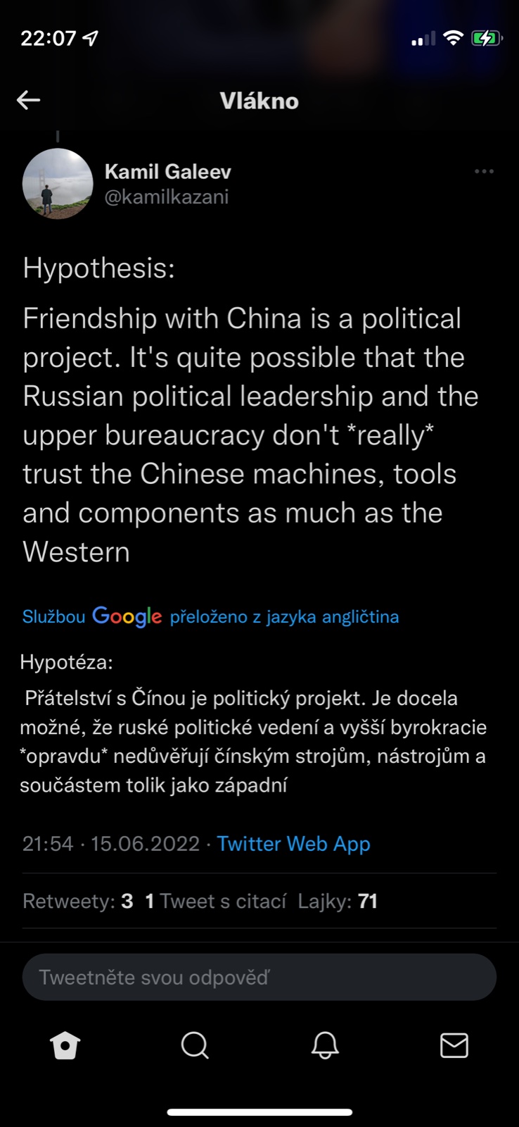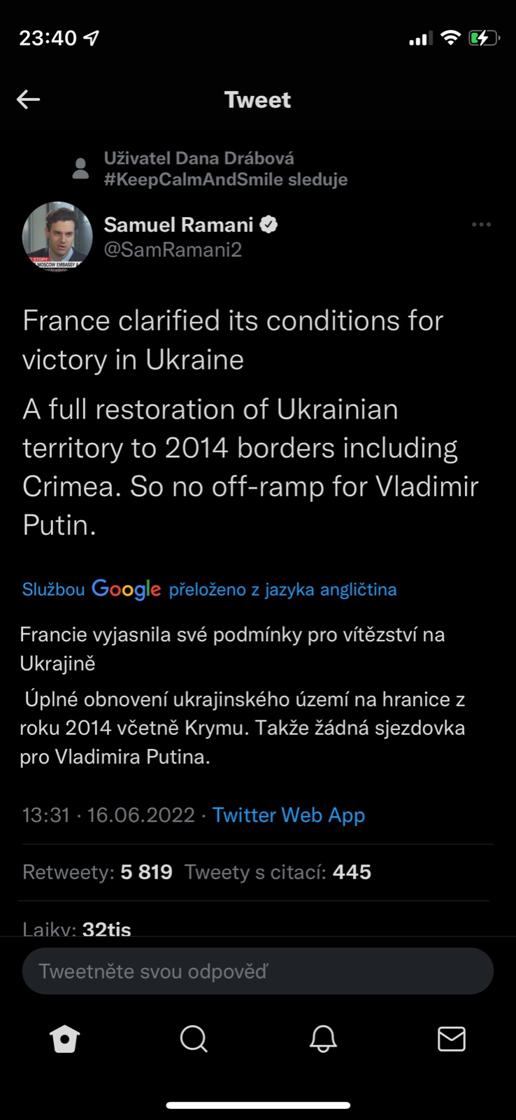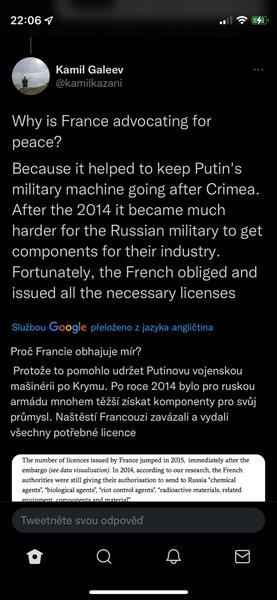 @amenophus nijak. Mám dojem, že jde jen o slova. Přijde mi to trochu jako když tě někdo zve neustále na pivo. Ale tobě se fakt nechce, seš utahanej, ten člověk ti třeba úplně nesednul, nebo máš ještě kocovinu. A tak reknes “jó kámo, jasně že půjdeme na pivo!” Aby dal pokoj. A chvíli před schůzkou to buď odvoláš, nebo nedáš vědět vůbec. Ukrajina prohrává a obavám se, že nakonec prohraje. Podpora a dodávky zbraní klesaj. Ale budeme pořád mluvit o tom, že Rusko musí pryč z Ukrajiny a že pryč bude. Nebude.